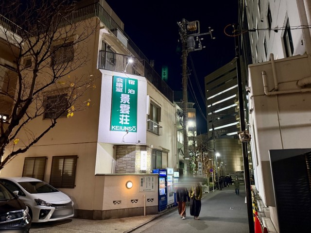 First off, it was a treat not needing to catch the train after a long night of celebrating. We started walking from Shinjuku Station’s South Exit, and within moments the atmosphere of the neighborhood had changed from the loud sounds of a station to relative stillness. We easily found Keiunso just a bit off of a main street.