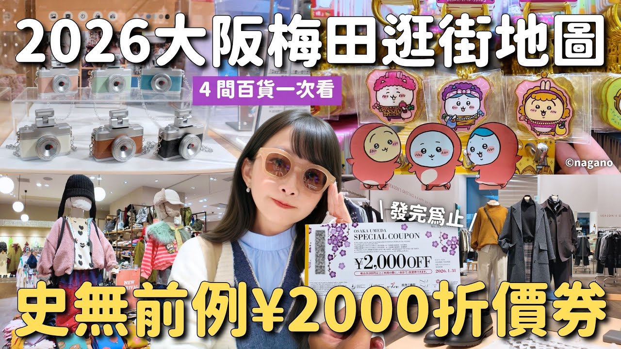 🌟 2026.1.2 起,在大阪梅田購物時,出示截圖 (00:52) + 護照,每人可領取 1 張 2,000 日圓優惠券 (發完為止)