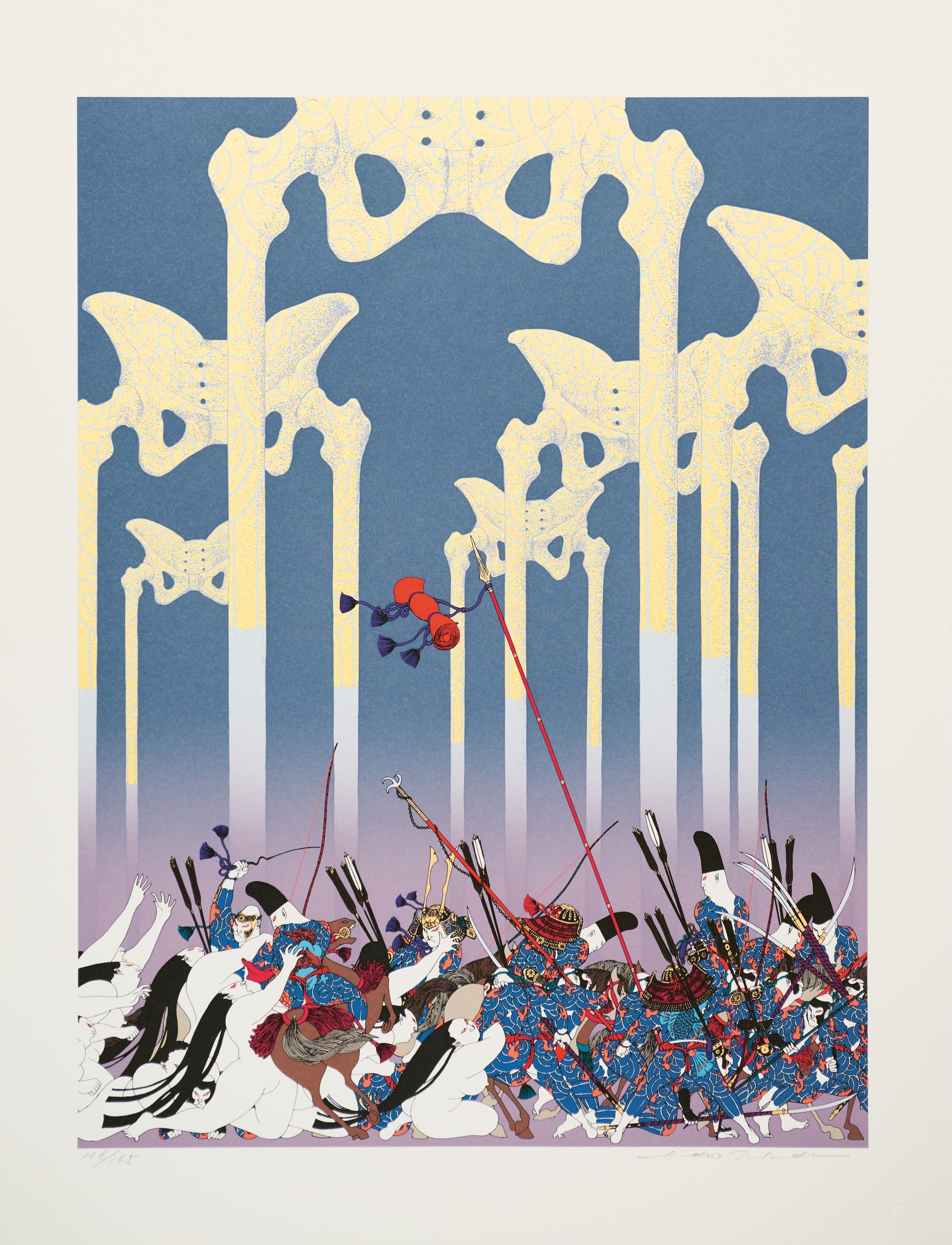 Takea Hideo, “The Heike Clan’s Capital” from the series ‘Genpei’ (1985-99), silkscreen print, 20 3/4 × 15 1/2 inches. © Hideo Takeda