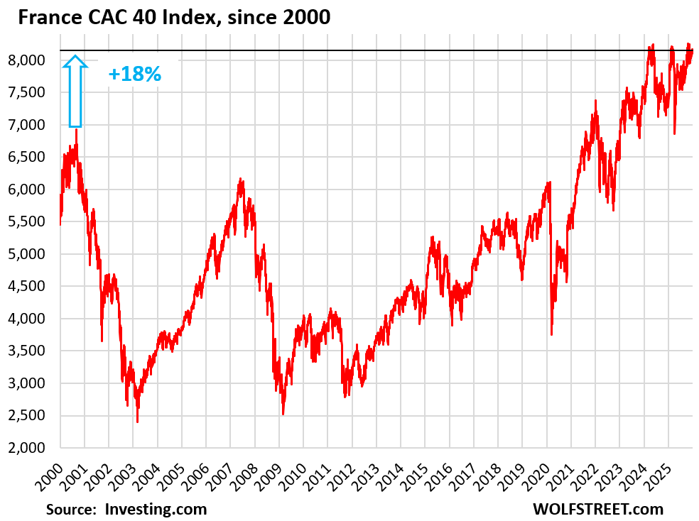 The CAC 40 rose by 10.4% in 2025, to 8,149 where it had first been in April 2024. But it had declined in 2024.
