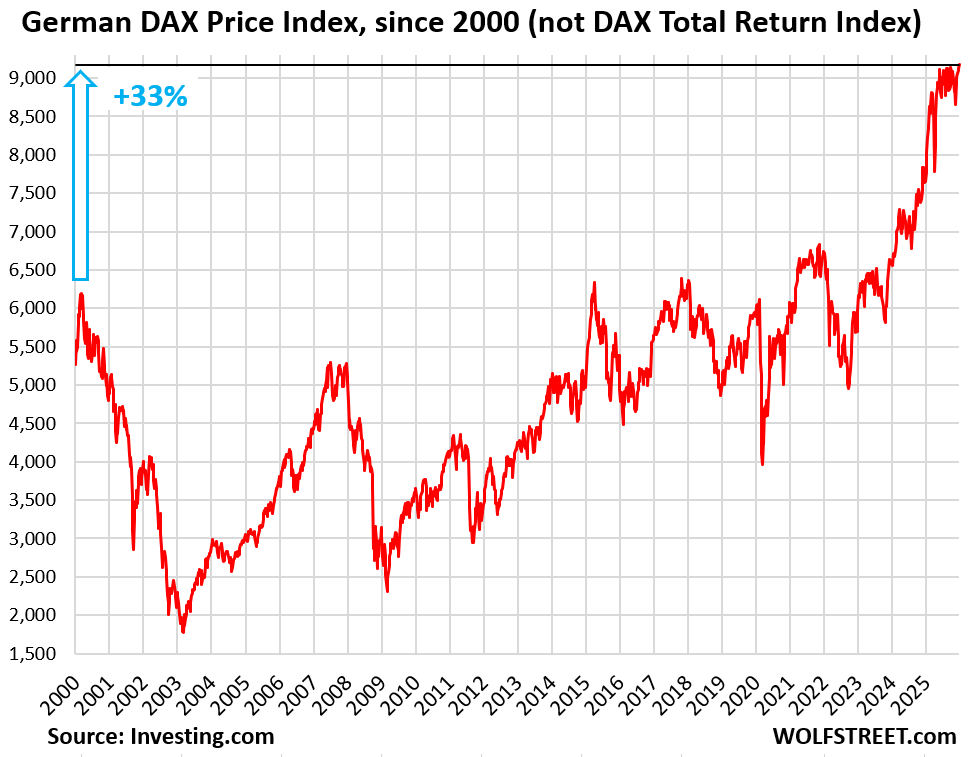 The DAXK soared 20% in 2025 to 9,175, after having already soared by 16.5% in 2024.