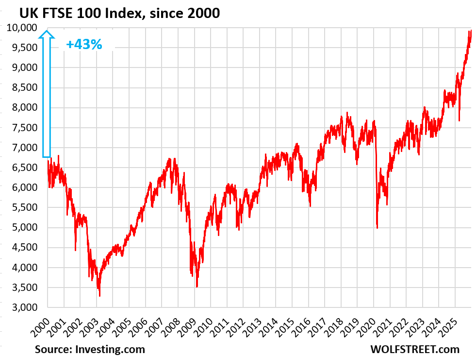 The FTSE 100 soared by 21.5% to 9,931 in 2025, after the 5.7% gain in 2024.