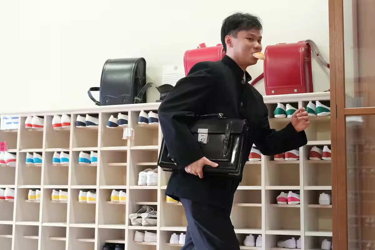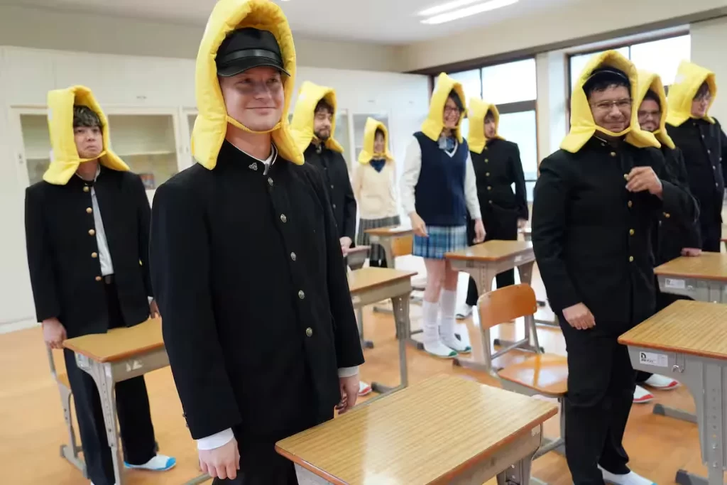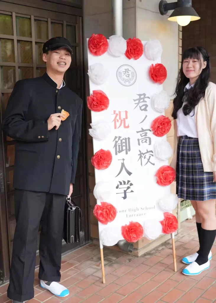 The experience is modeled on high school life in the late Showa era. Upon arrival, participants select a school uniform, take commemorative photos in front of a sign reading “Entrance Ceremony,” and then head to their assigned classroom.
