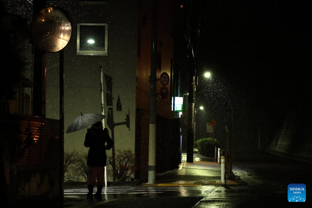 A man walks on a street on the first snow day of 2026 in Tokyo, Japan, Jan. 2, 2026. (Xinhua/Jia Haocheng)