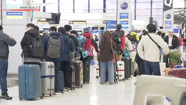 Major airlines in Japan say the number of passengers on domestic flights during the New Year holiday period rose by about 1 percent from a year earlier. The number of people traveling on international flights increased by around 10 percent.