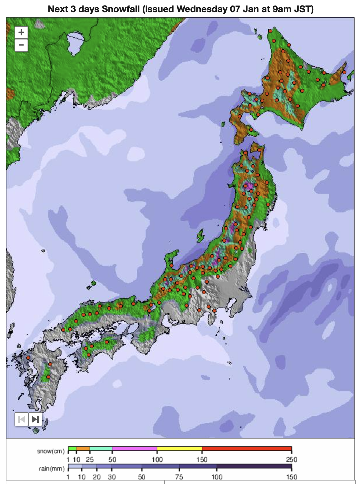 Weekly Snow News for Japan, updated 7 January 2026: Niseko and Kiroro see significant accumulation amid unsettled conditions and fluctuating freezing levels on Honshu.