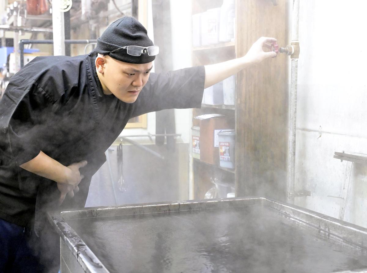 KYOTO — Close to the site where 16th-century warlord Oda Nobunaga met his end, famous spring water still gushes steadily from the eaves of a dyeing workshop in Nakagyo Ward, Kyoto.