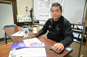 Norihiko Suzuki, secretary-general of the Kutchan Tourism Association, introduces the digital resident identification service “Kutchan ID+” in the town of Kutchan, Hokkaido, Dec. 1, 2025. (Mainichi/Ayako Morihara)