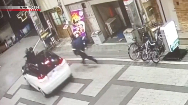 The incident occurred on Wednesday along a shopping arcade about 300 meters from Kishiwada Station in Kishiwada City. An officer noticed a white car driving along the arcade at around 5:30 p.m., a time of the day when traffic is banned.
