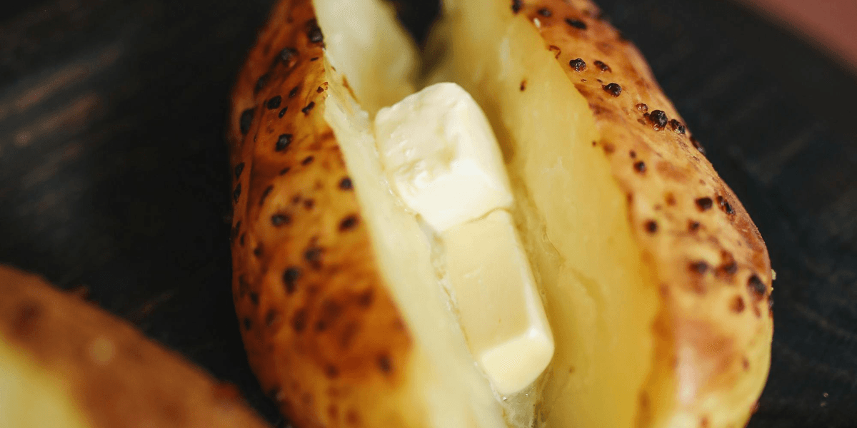 You can really prep your potato however you like, whether it’s baked or air-fried. Either route you choose, you’ll want to make a quick miso-maple glaze in a shallow saucepan by combining white miso, maple syrup, and a small splash of rice vinegar. Add it to your ‘tato, and dig into all the umami notes you’ll ever need.