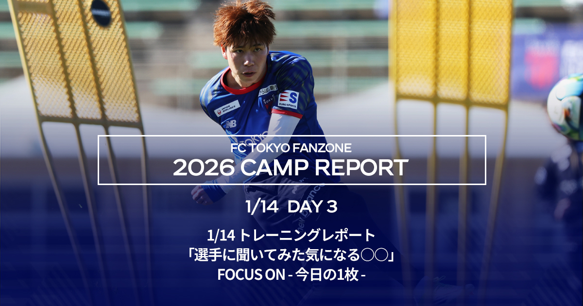 The official photographer on the third day of the camp chose this shot for “FOCUS ON.” This camp has featured many match-style training sessions from the start, and the players have increasingly taken opportunities to exchange opinions about positioning and movement during breaks. At the center of these discussions since joining has always been Takahiro KO. However, this season, Hayato INAMURA and Kento HASHIMOTO have also joined in, and the circle of conversation looks set to expand even further from here.