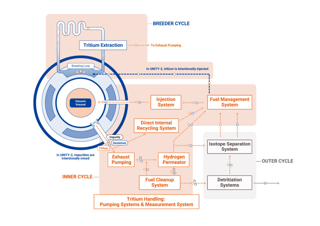 UNITY-2 is designed to demonstrate a complete fusion fuel cycle system, continuously supplying tritium and deuterium to a reactor core. In this setup, the VST will extract tritium from lithium-lead and safely deliver it to the core via dedicated storage and pumping systems—distinct from those in UNITY-1.