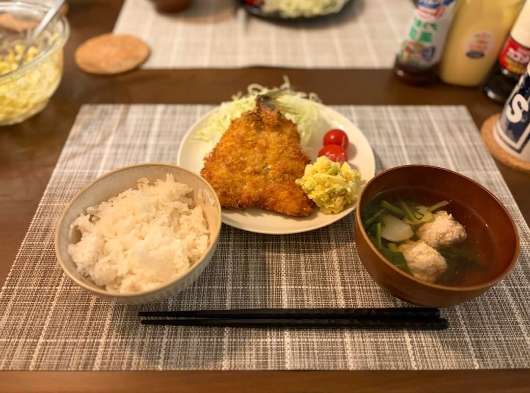 My husband decided to go all out. He filleted the horse mackerel (Aji) from scratch and even made the tartar sauce by hand. It tasted like professional comfort food. 🐟🥢