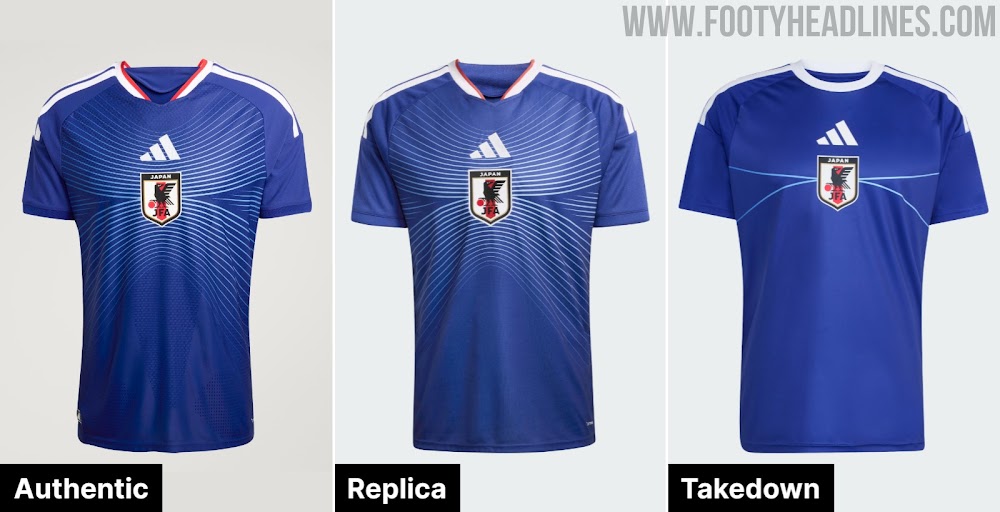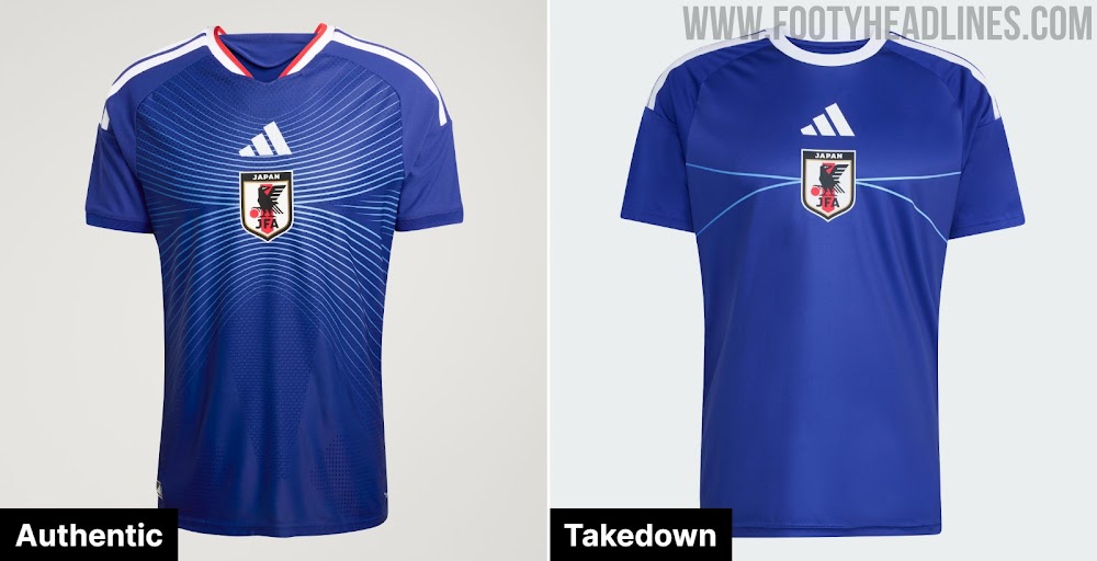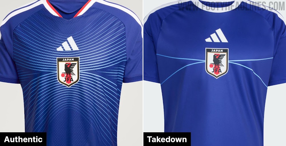 Rounding off the cheap look are the simple plastic logos used for the Adidas Japan 2026 takedown shirt, instead of the hologram logos of the official kit.