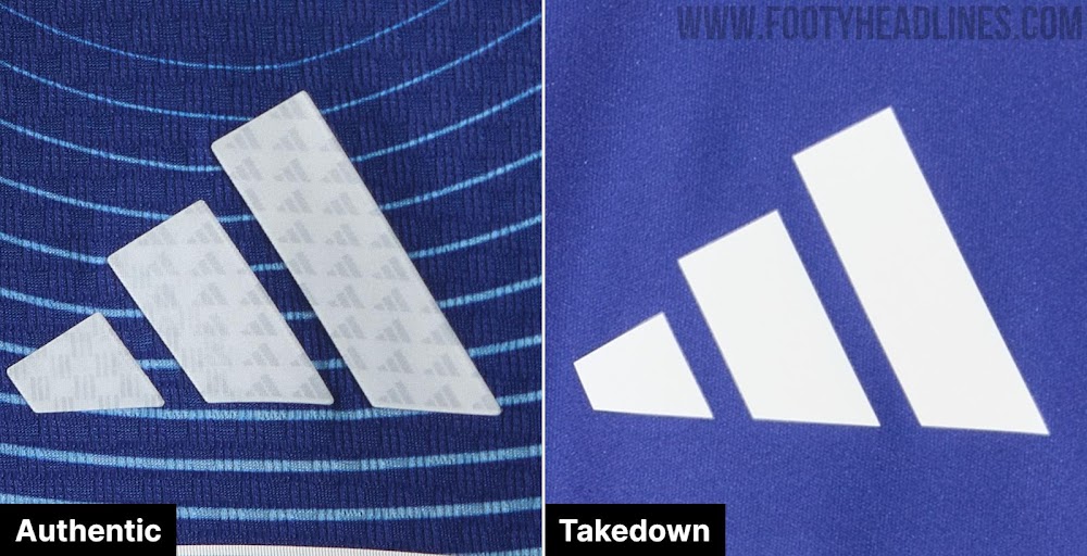 Logo Quality: The takedown shirt uses simple plastic logos, which is a downgrade from the hologram logos of the official kit.