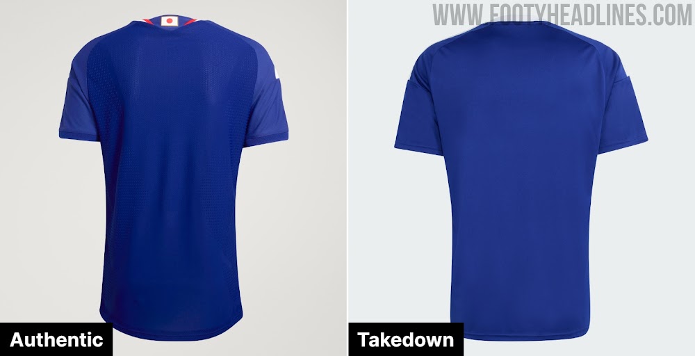 The collar of the Adidas Japan 2026 takedown football shirt is also simplified – instead of a complex red and white collar, the takedown has a simple round neck.