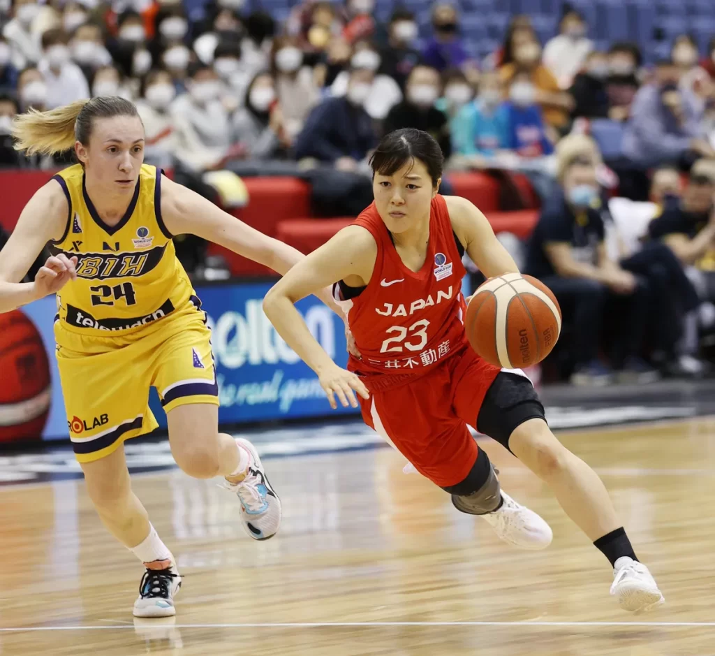 Japan point guard Mai Yamamoto in action against Bosnia and Herzegovina in a FIBA Women’s Basketball World Cup qualifier on February 13, 2022, in Osaka. (Representative Photo/JIJI PRESS/via SANKEI)