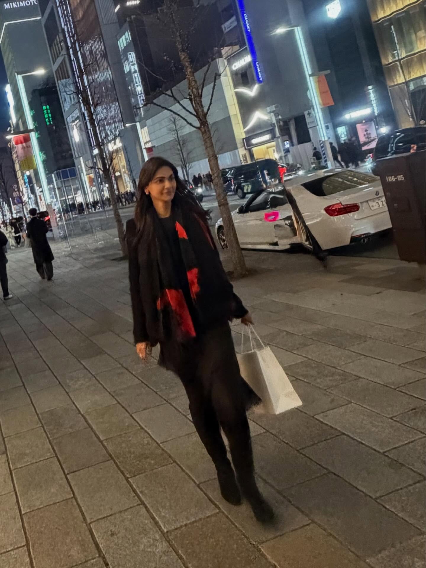Layered black on Allu Arjun. A rich black jacket on Sneha. Functional, sharp, effortless. The kids — Ayaan and Arha — looked like they belonged, not like accessories. This wasn’t “celebrity dressing”; this was confidence wearing clothes.