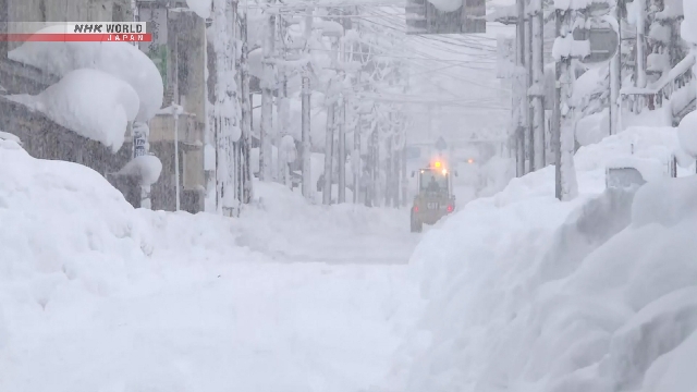 Heavy snowfall from Japan’s Hokuriku to Sanin regions is passing its peak. But the Meteorological Agency is warning of possible traffic disruptions as intermittent snowfall is expected in northern Japan, Niigata Prefecture, and elsewhere.