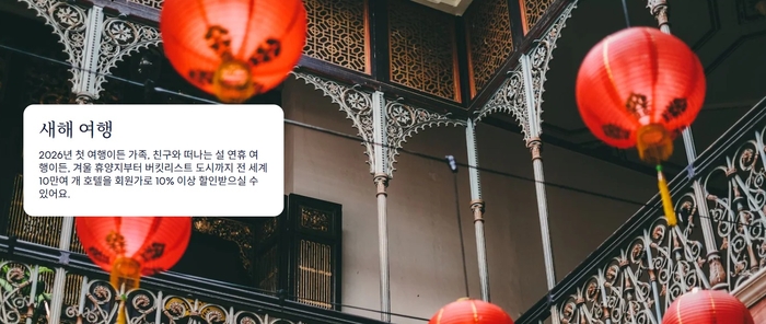 Hotels.Com has prepared a New Year’s promotion for travelers preparing for the Lunar New Year holiday. The event will run until February 2. The stay period will be fully applied until September 13, so you can take care of travel after the holiday in advance.