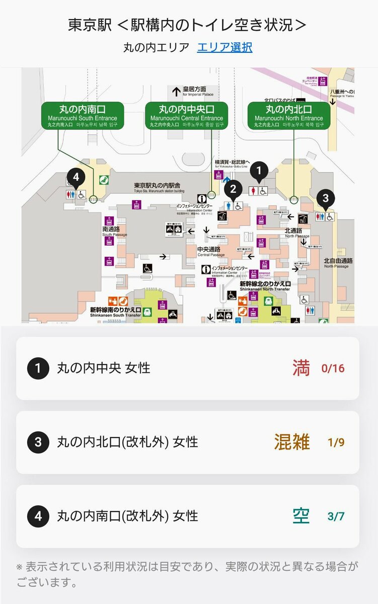 The company is encouraging dispersed use because building new facilities takes time, but it remains unclear how much this will ease congestion at stations such as Tokyo, where huge numbers of people pass through, and restroom availability is constantly changing.