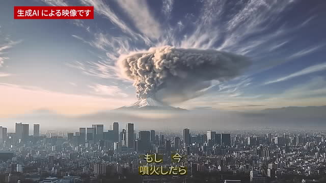 Mount Fuji is seen violently erupting in an AI-generated simulation video released by Japanese officials.