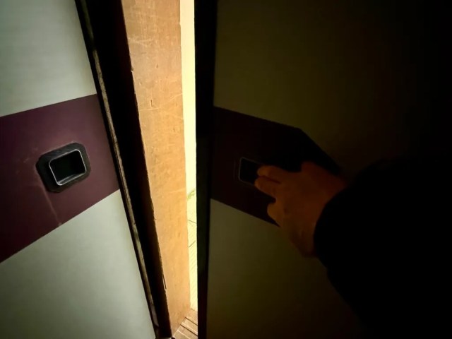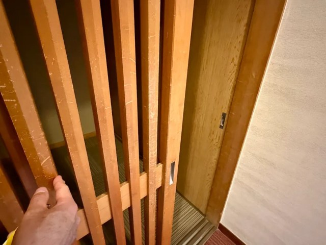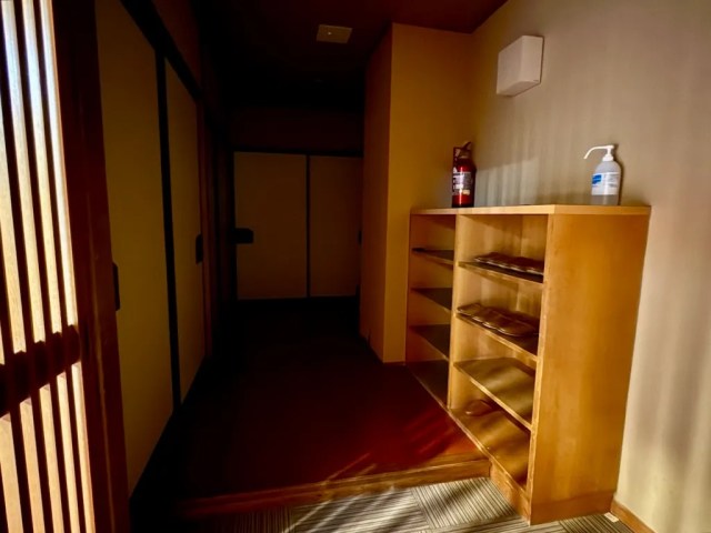 Unlocking the door and sliding it open, we stepped into an entryway area, of the sort you’d find in a Japanese home, where we could take off our shoes and put them on shelves before heading farther in.