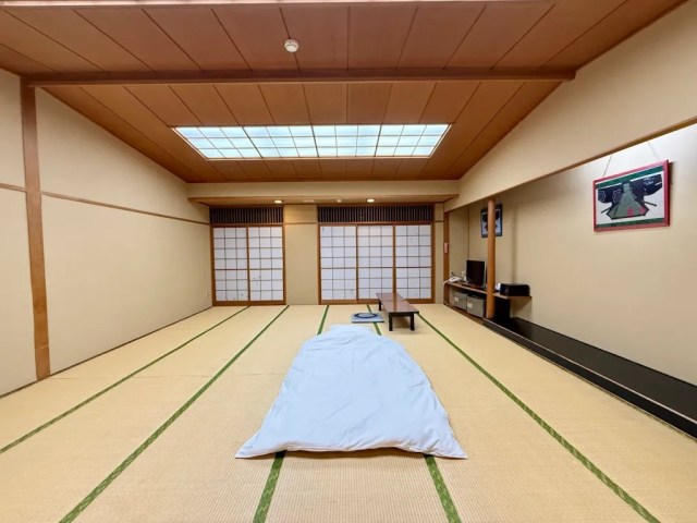 Oh, wow! So it turned out the reader who’d clued us in on this place wasn’t exaggerating. After checking with the hotel staff, we learned that this room has a total floor space of 24 tatami mats, which converts to just about 43.8 square meters, and while that’s still not quite as big as the spaces sued for officially sanctioned International Judo Federation competitions, this place definitely looks big enough for some practice sparring.