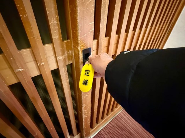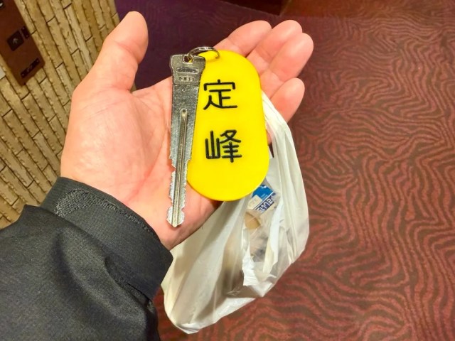 ▼ The kanji characters for Sadamine, 定峰, were written on the small placard attached to our room key.
