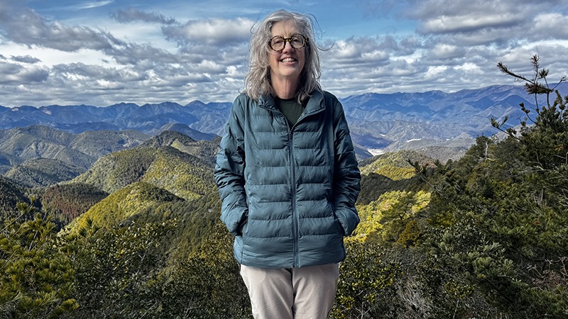 Jennifer Bain at a lookout along the Kumano Kodo trail