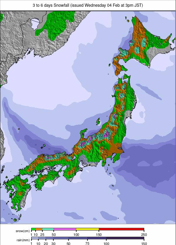 Japan snow forecast for the next 3-6 days.