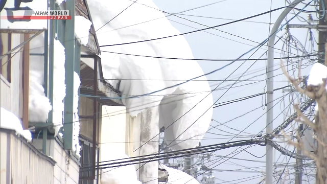 Temperatures in some parts of Japan are relatively warm for this time of year, raising the risk of snow falling from roofs.