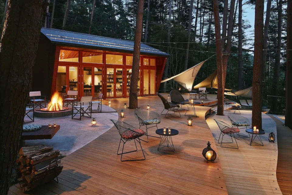 Stroll through the hillside overlooking Lake Kawaguchi and enjoy the trendiest form of luxury outdoor glamping. HOSHINOYA Fuji is Japan’s first luxury glamping resort. Each room is a standalone cabin designed to face the stunning view of Mount Fuji directly. With the half-board stay plan, you can enjoy DIY campfire dinners and breakfast boxes. The resort also offers various recreational activities such as early morning yoga, forest terrace afternoon tea, and campfire bar drinks. You can also participate in nature excursions like trekking in the Aokigahara forest, canoeing on Lake Kawaguchi, or horseback riding by the lake, making it perfect for couples, families, or groups of friends.