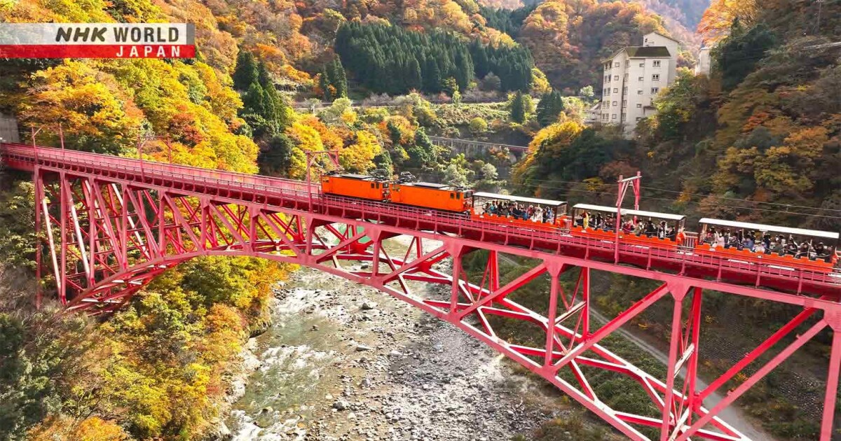 Travel along the Kurobe River on the Toyama Chihou and Kurobe Gorge Railways in Toyama Pref. The river provides water for farms, businesses and households. Upstream, the river has carved a deep gorge.