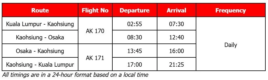 AirAsia Malaysia (flight code AK) is accelerating its fifth-freedom expansion strategy with the introduction of a new Kaohsiung-Osaka route, operated as part of its Kuala Lumpur-Kaohsiung service, marking the next phase of the airline’s network growth across North Asia.