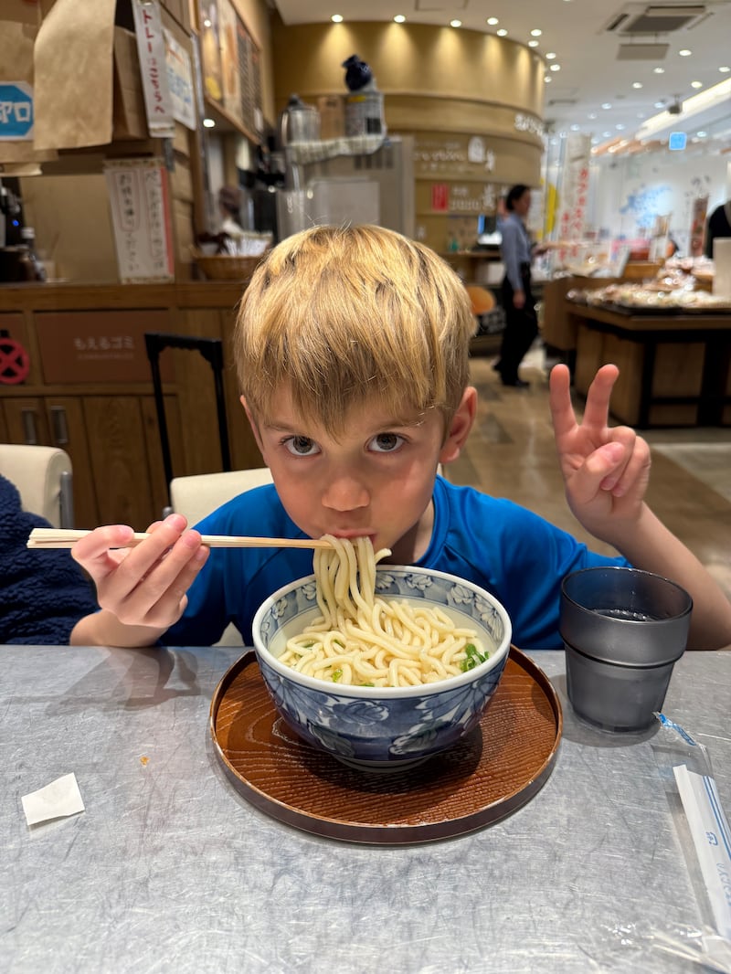 Ari Cohn enjoys a bowl of udon during a family vacation to Japan. (Photo by Sara Dykstra)