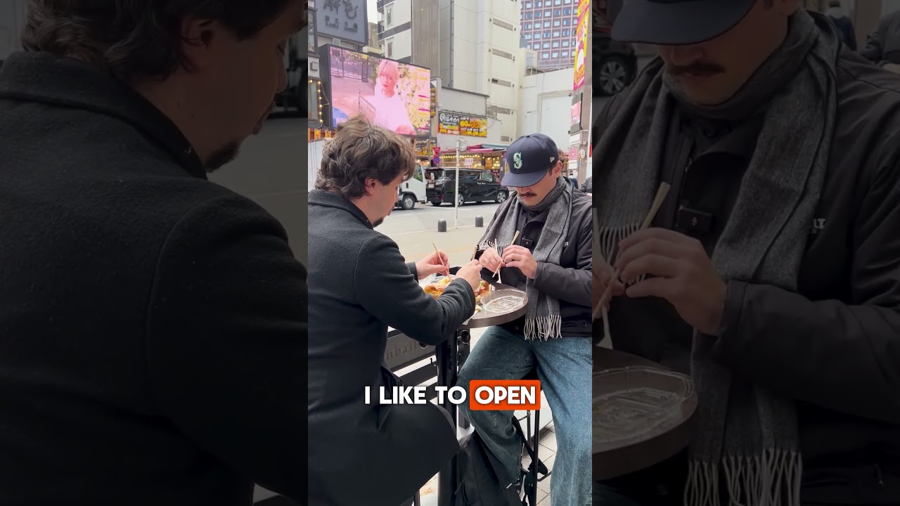 They tried Tokyo-style takoyaki, which tends to be crispier on the outside compared to the softer, doughier style commonly found in Osaka. Max showed him how to open the takoyaki slightly to let the steam escape and cool it down — a necessary step, as the inside can be extremely hot.