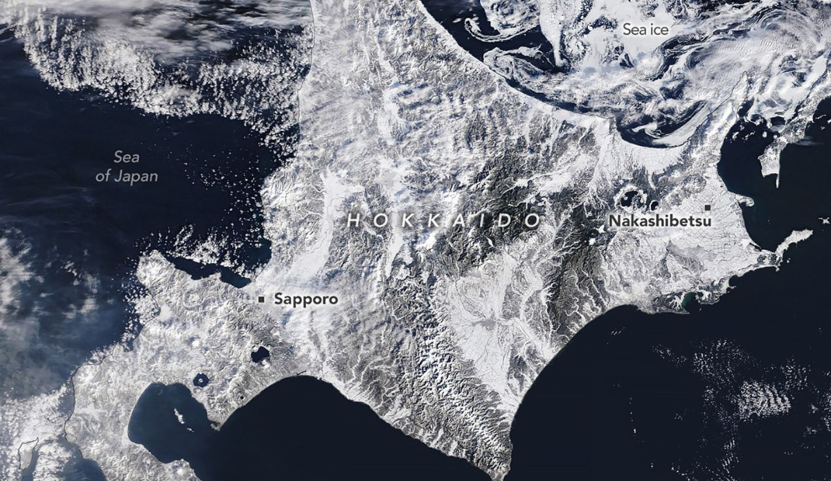 Aomori, a city in the Tōhoku region, was hit especially hard, where the Japan Meteorological Agency reports residents are still navigating 1.3 meters (more than four feet) of snow still on the ground. Meanwhile, a new satellite image highlights those conditions just north of Aomori on the northern island of Hokkaido. The island typically sees more than 140 days of snowfall each year and more than six meters of snow accumulation (20 feet). And the image from NASA’s Terra Satellite on February 5 shows the entire island covered in white. Every inch of it on screen, including a massive collection of sea ice to the north of the island.