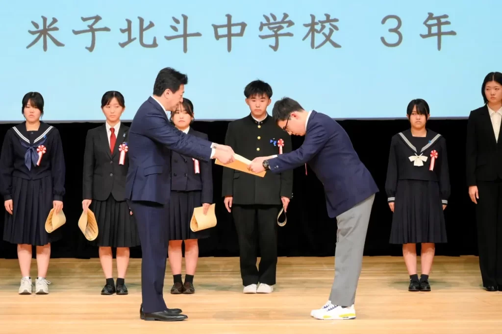 Chief Cabinet Secretary and Minister for the Abductions Minoru Kihara presents the Grand Prize certificate to Taishi Sushidabanchi. December 13, 2025 (©Prime Minister’s Office)