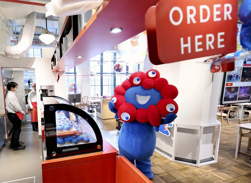 The cafe, which will run through Thursday, serves drink and cakes featuring Myaku-Myaku, the mascot of the Expo, which was held between April and October last year.