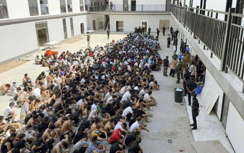 Police gathered foreign recruits at a large-scale criminal fraud base in Myanmar on February 16, 2025 (©Kyodo)