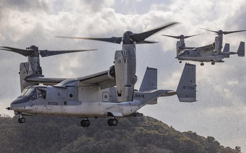 Japan grounded its 17 Ospreys for two weeks in October 2024 after one of the aircraft struck the ground during the bilateral Keen Sword exercise as it attempted to take off from Camp Yonaguni, a Japanese base on a remote island west of Okinawa. No one was injured.