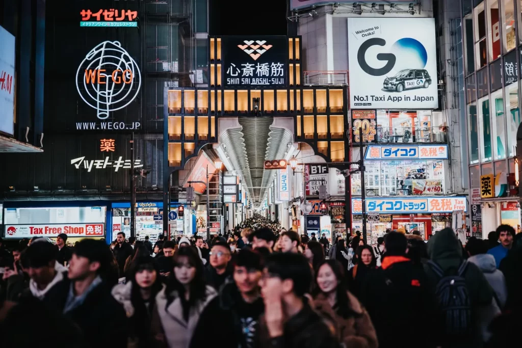 The main “tourist attraction” of Dontonbori would have to be the famous running man Glico sign. This is a huge LED sign that EVERYONE wants to get a photo in front of, except me, apparently. I was more fascinated by people watching and capturing images of the mass of people there. Needless to say, I moved on down the street quite quickly to see the rest of the area.