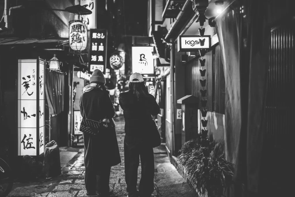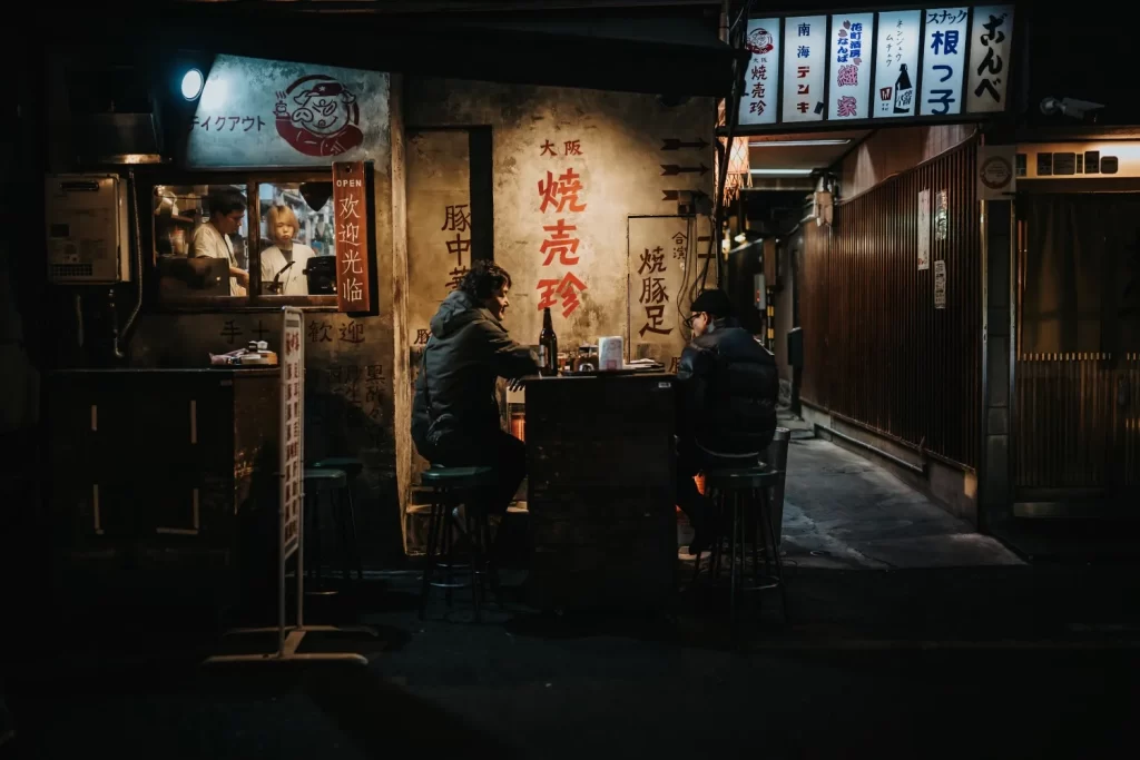The combination of the light, the grittiness of the shop exterior, and the simplicity of two people sharing a drink on a cold Osaka night really spoke to something inside me. In the end, it was easily my favorite shot from the night.
