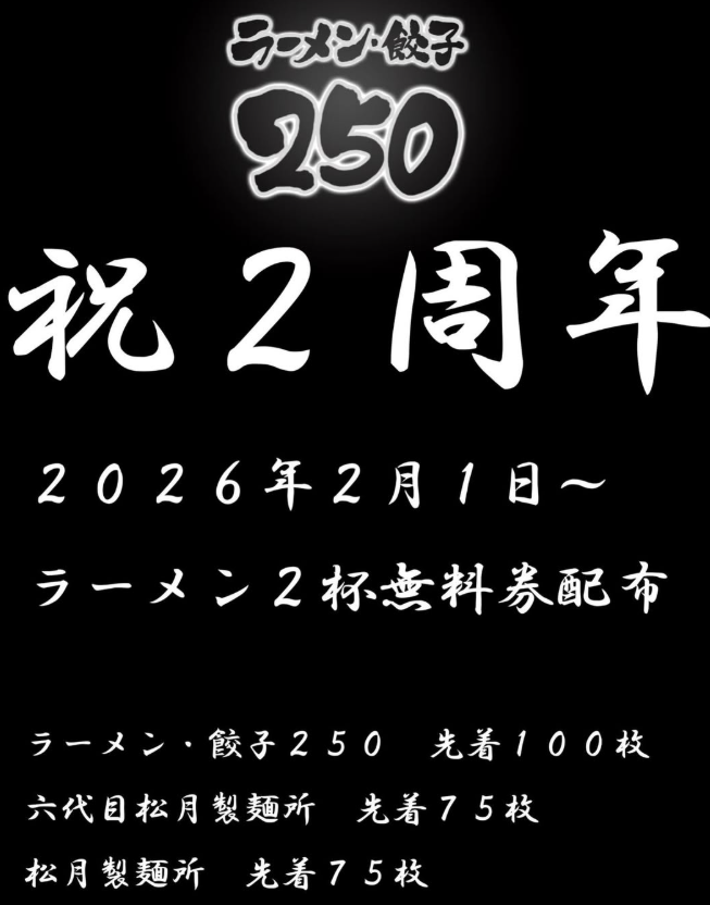 An Instagram post from Ramen Gyoza 250 celebrates its second year of offering cheap ramen. (Picture: Ramen Gyoza 250 on Instagram)