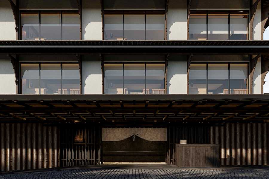The four-story building stands on the former site of Shindo Elementary School in Kyoto, Japan. The hotel offers a total of 89 guest rooms, including 29 suites, such as Deluxe City Rooms, Premier Theatre Rooms overlooking the Miyagawa-cho Kaburenjo Theater, Gion Suites with a direct view of Kennin-ji Temple, suites with private onsen baths, and the 206-square-meter Capella Suite on the top floor with panoramic views of the Higashiyama mountain range.