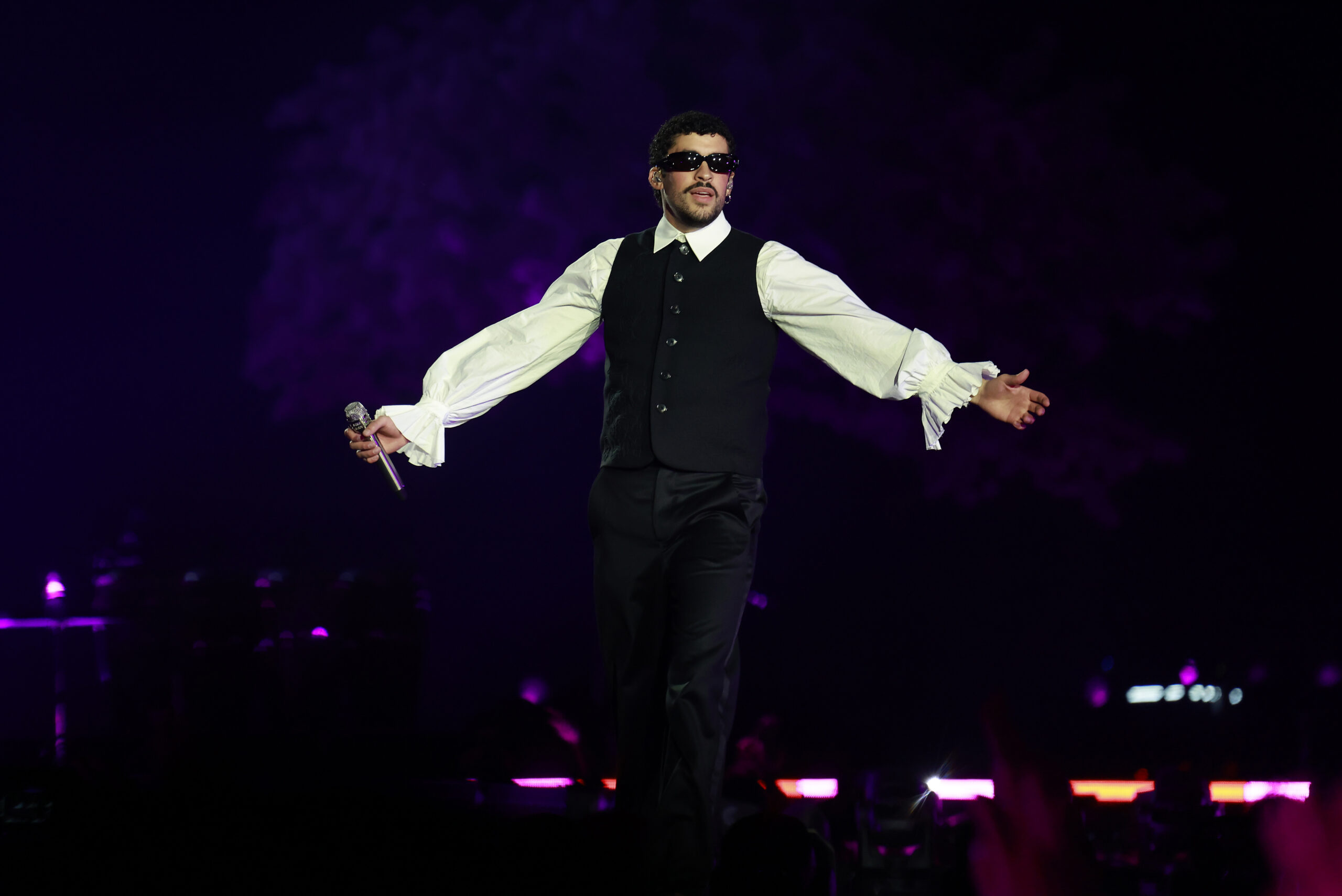 Album-opener “NUEVAYoL” featured an incredible performance from the band. And then he closed with “DTMF,” the touching ballad that is on its way to becoming the biggest hit of his career. Benito paused to deliver a short message about overcoming regret, ignoring criticism, and embracing love. “Love as much as you can. Love yourself. Love without fear,” he told the crowd.