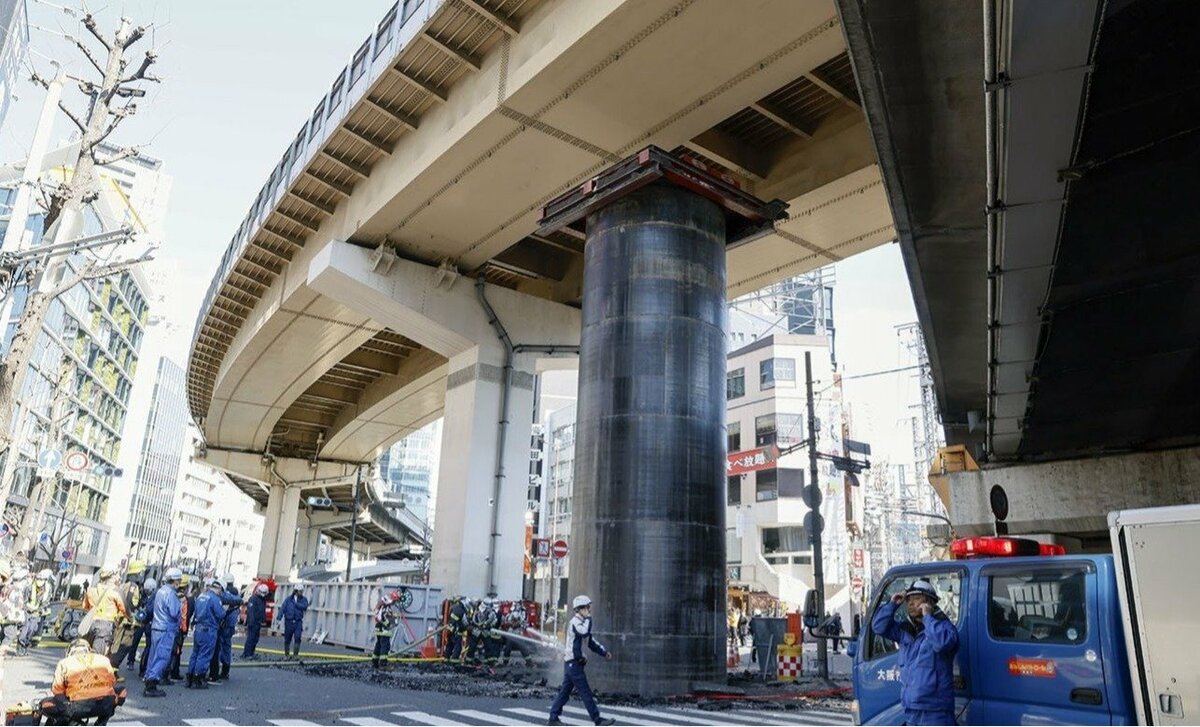 Osaka prefectural police said they received an emergency call around 6:50 a.m. from a pedestrian reporting that “concrete is falling at a construction site.” About five minutes later, officers confirmed that a pipe about five meters in diameter was protruding at the site.
