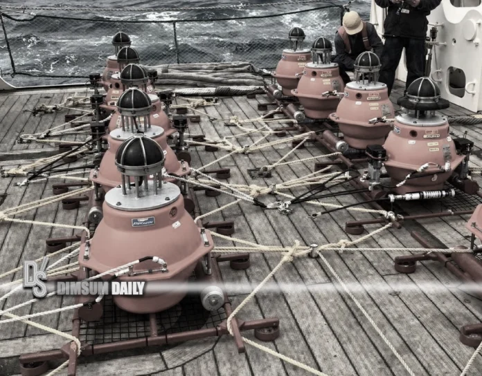 Equipment used to gather acoustic data from the ocean floor is pictured on board a research vessel in an image released by Tohoku University, Hokkaido University and the Japan Agency for Marine-Earth Science and Technology Picture credit: JAMSTEC