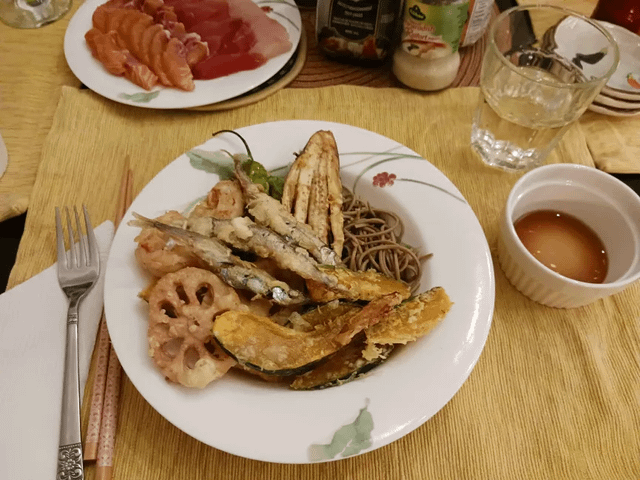 I was missing kabocha tenpura and convinced my family to let me cook up dinner. Here's what we made :